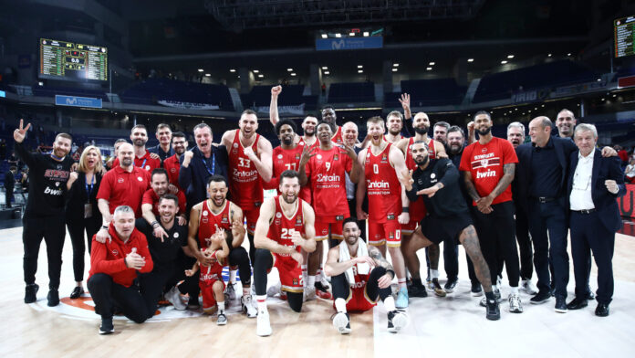 Ο Ολυμπιακός κέρδισε την Ρεάλ Μαδρίτης με 86-84 και πήρε την πρόκριση για το Final Four του Άμπου Ντάμπι με τους πανηγυρισμούς όπως είναι φυσικό με την λήξη της αναμέτρησης να είναι έντονοι.