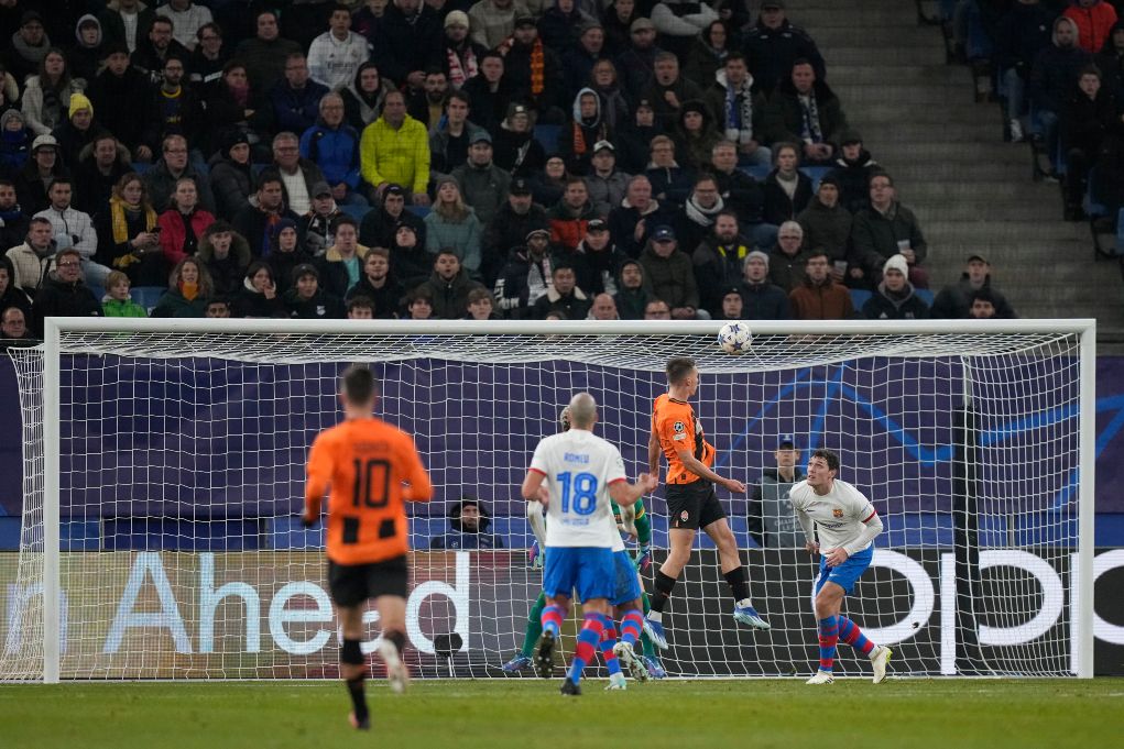 Όσο η Μπαρτσελόνα αδυνατούσε να απειλήσει, η Σαχτάρ ανέβαζε ρυθμούς και έπαιρνε πρωτοβουλίες στο γήπεδο. Αυτό οδήγησε και στο να σκοράρει, σοκάροντας έτσι την ομάδα του Τσάβι. Στο 40′, ο Γκοχολεϊσβίλι έκανε μία καλή κούρσα στα δεξιά, σέντραρε με ακρίβεια και ο Σίκαν έστειλε μία τρομερή κεφαλιά στο πλαϊνό δίχτυ, καθιστώντας έτσι ανήμπορο τον Τερ Στέγκεν να αντιδράσει. Το γκολ έμελλε να είναι και η τελευταία ουσιαστικά φάση σε ένα κατά τα άλλα ανιαρό ημίχρονο.