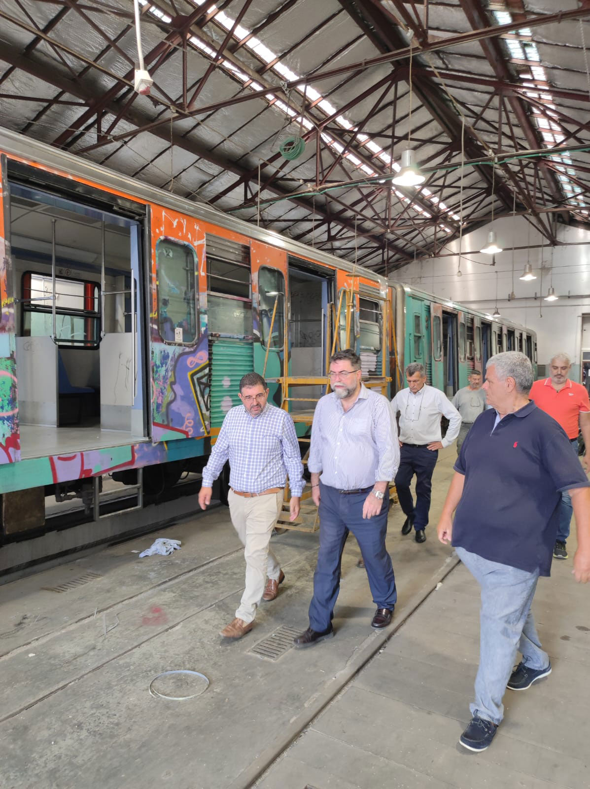 Ο Υφυπουργός Υποδομών και Μεταφορών, Βασίλης Οικονόμου, πραγματοποίησε σήμερα επίσκεψη στον σταθμό του Πειραιά της Γραμμής 1 του Μετρό (πρώην ΗΣΑΠ) και επιθεώρησε τα αμαξοστάσια στον Πειραιά και το Νέο Φάληρο.