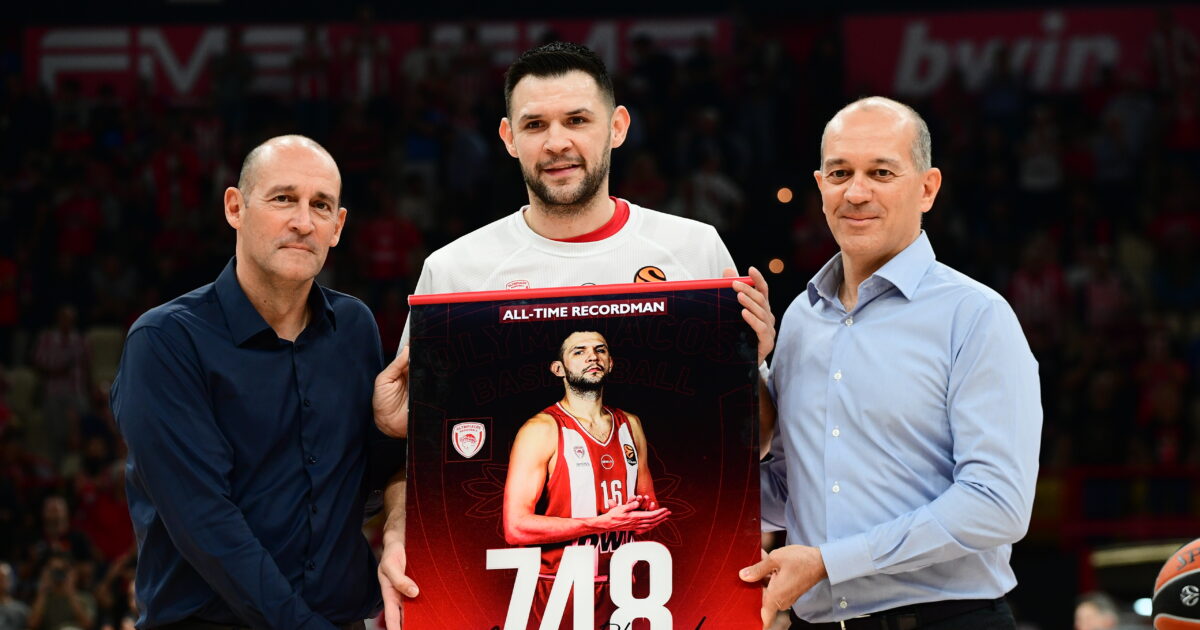 Μια ιστορική στιγμή έζησαν οι θεατές στο ΣΕΦ, πριν το παιχνίδι του Ολυμπιακού απέναντι στη Dubai BC, καθώς οι «ερυθρόλευκοι» τίμησαν τον Κώστα Παπανικολάου, ο οποίος κατέχει πλέον το ρεκόρ συμμετοχών στην ιστορία του συλλόγου με 748 εμφανίσεις.