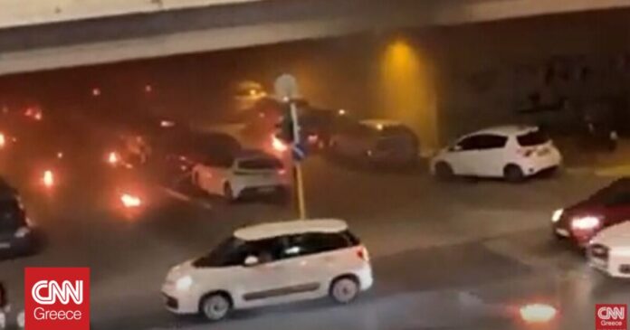 Περίπου 100 άτομα που είχαν συγκεντρωθεί εκεί ξεκίνησαν να πετούν πέτρες και μολότοφ προς τις δυνάμεις των ΜΑΤ που βρίσκονταν στον χώρο λόγω και του ντέρμπι Ολυμπιακός – Παναθηναϊκός για τη Basket League.