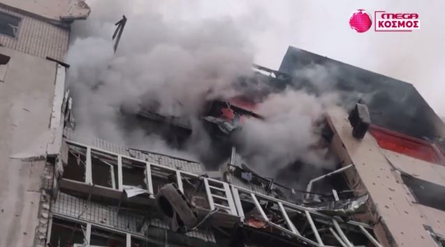 Ρωσικός πύραυλος χτυπά γειτονιά στο Χάρκοβο. Οι πολυκατοικίες μετατρέπονται σε ερείπια.
