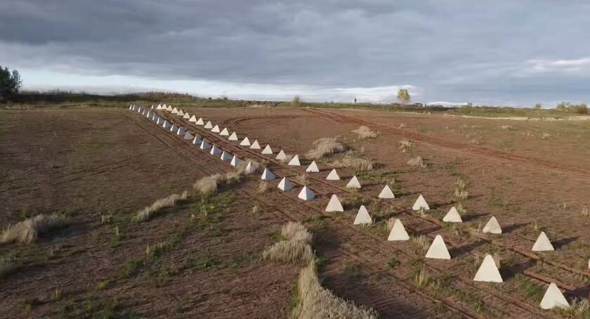 Μία μεγάλη τάφρος βρίσκεται πίσω από την αντιαρματική οχύρωση που αποτελείται από τέσσερις σειρές τσιμεντένιων πυραμίδων για τις οποίες οι Ρώσοι ελπίζουν ότι θα εμποδίσουν οποιαδήποτε ουκρανικά οχήματα και τανκς να κινηθούν προς τα ανατολικά.