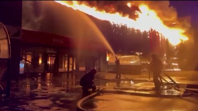 Ένα σουπερμάρκετ τυλίχθηκε στις φλόγες, τρεις άνθρωποι τραυματίσθηκαν, ενώ άλλοι 7 σκοτώθηκαν από βομβαρδισμούς σε άλλες περιοχές της Ουκρανίας.