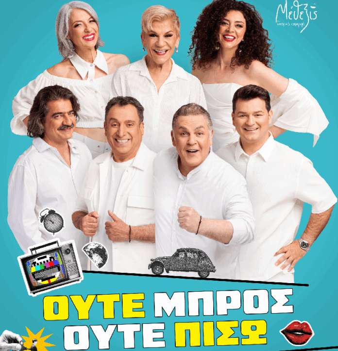 Ο Θανάσης Παπαθανασίου και ο Μιχάλης Ρέππας, σε παραγωγή της εταιρείας Μέθεξις του Χρήστου Τριπόδη, παρουσιάζουν αυτό το καλοκαίρι στο Αγρίνιο τη νέα τους παράσταση, «Ούτε Μπρος ούτε Πίσω». Πρωταγωνιστούν: Χρύσα Ρώπα, Αντώνης Λουδάρος, Ματθίλδη Μαγγίρα, Πάνος Σταθακόπουλος, Δήμητρα Στογιάννη, Γιάννης Δρακόπουλος, Ιωάννης Απέργης.