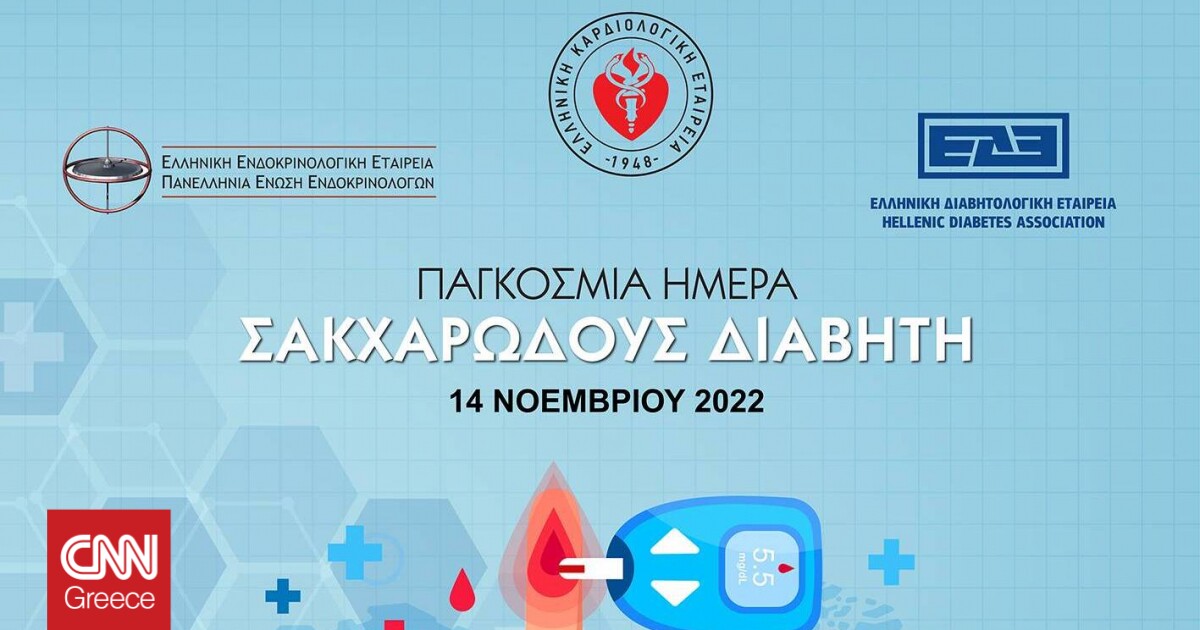 Στο πλαίσιο της σημερινής Παγκόσμιας Ημέρας Διαβήτη 2022, η Ελληνική Καρδιολογική Εταιρεία και η Ομάδα Εργασίας «Καρδιά και Διαβήτης» της ΕΚΕ, σε συνεργασία με την Ελληνική Ενδοκρινολογική Εταιρεία και την Ελληνική Διαβητολογική Εταιρεία, με Περίπτερο που θα στηθεί στον αύλειο χώρο του Ζαππείου, θα ενημερώσουν και ευαισθητοποιήσουν το κοινό για τον Σακχαρώδη Διαβήτη, σήμερα, Δευτέρα 14 Νοεμβρίου 2022, ώρες 09.00-15.00.