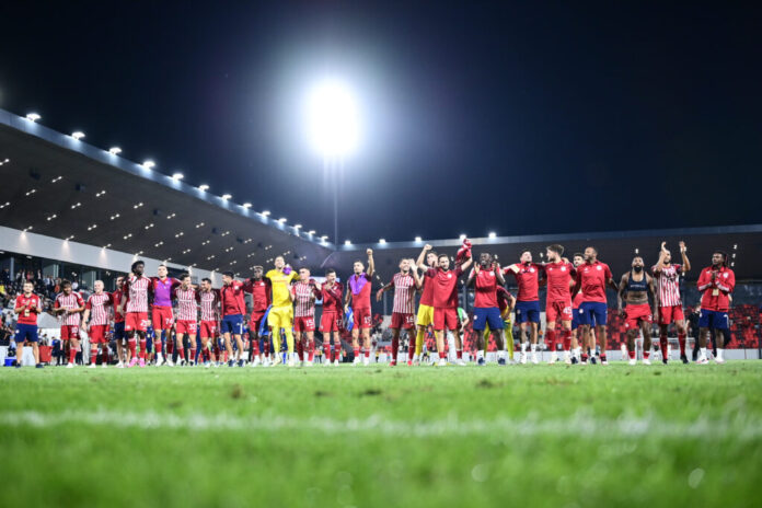 Οι “ερυθρόλευκοι” έφτασαν στην επίτευξη του πρώτου στόχου της σεζόν, παίρνοντας την πρόκριση για τους ομίλους του Europa League, με τη νίκη τους επί της Τσουκαρίτσκι στη Σερβία. Στο Λέσκοβατς είχαν στο πλευρό τους, τον κόσμο τους που μετά το τέλος της αναμέτρησης τους αποθέωσε. Παίκτες και κόσμος έγιναν… ένα, τραγουδώντας ρυθμικά συνθήματα.