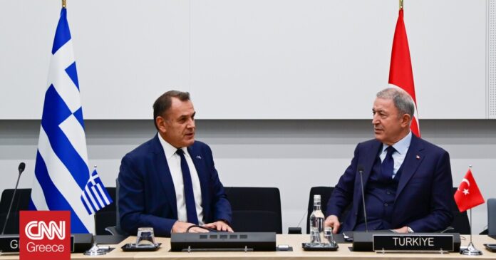 Στη χθεσινή συνάντησή του με τον Νίκο Παναγιωτόπουλο αναφέρθηκε ο Τούρκος υπουργός Άμυνας, ο οποίος έστειλε μήνυμα υπέρ του διαλόγου μεταξύ Αθήνας και Άγκυρας «χωρίς την ανάγκη παρέμβασης τρίτων», ενώ εξέφρασε την πρόθεση για επανεκκίνηση των συζητήσεων στο πλαίσιο των μέτρων οικοδόμησης εμπιστοσύνης (ΜΟΕ).