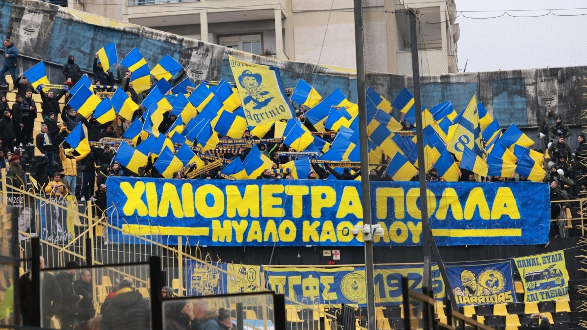 Οι «κυανοκίτρινοι» έχουν τη δική τους εξέδρα στο «Κλεάνθης Βικελίδης» και μάλιστα λίγο πριν τη σέντρα έκαναν ένα ωραίο κορεό.