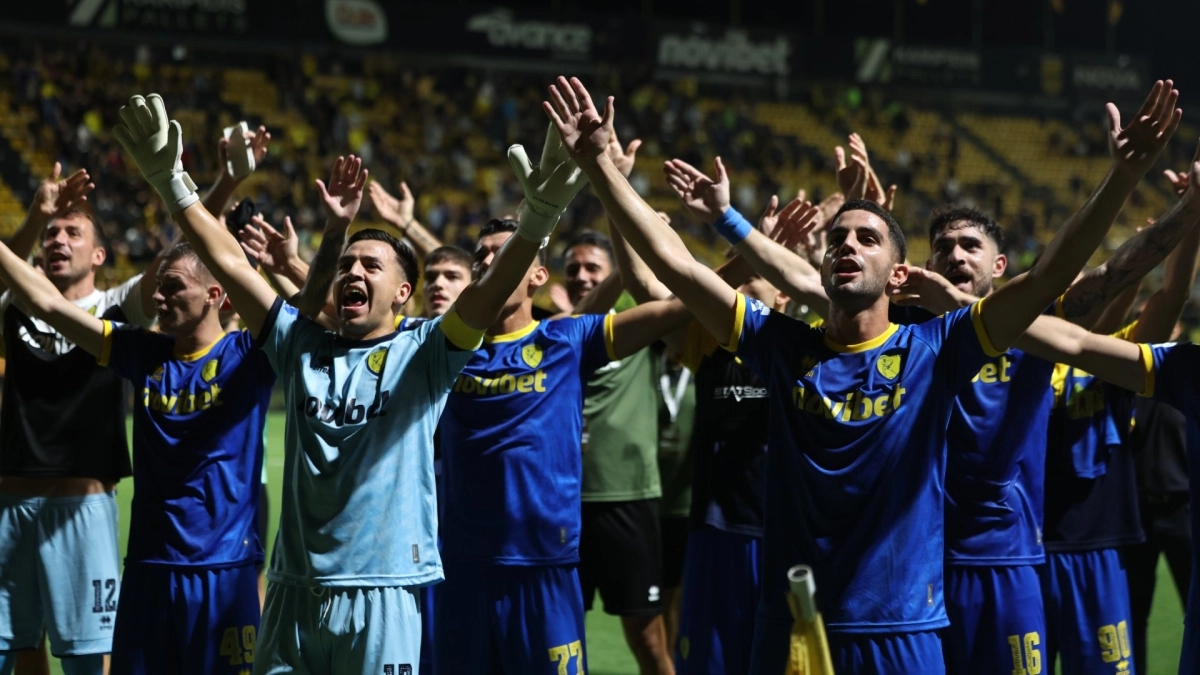 Μετά το παιχνίδι οι παίκτες του Γιάννη Πετράκη ξέσπασαν σε πανηγυρισμούς και το χάρηκαν μαζί με τους περίπου 100 φίλους των Καναρινιών που βρέθηκαν στην έδρα των Θεσσαλονικιών για να στηρίξουν την ομάδα τους.