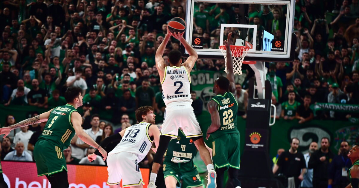 Ο Παναθηναϊκός έδωσε μεγάλη “μάχη” κόντρα στη Φενέρμπαχτσε και παρότι βρέθηκε να “κυνηγάει” στο σκορ στο φινάλε, έφθασε μέχρι την ισοφάριση με καλάθι του Σορτς, αλλά ο Μπάλντγουιν μετέτρεψε σε buzzer beater τα 2,5 δευτερόλεπτα για τη λήξη και με ένα τυχερό καλάθι με ταμπλό, “ξέρανε” τους “πράσινους” στο Telekom Center Athens.