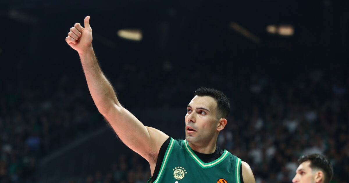 Ο Κώστας Σλούκας με τη φανέλα του Παναθηναϊκού/ (ΜΑΡΚΟΣ ΧΟΥΖΟΥΡΗΣ / EUROKINISSI)
