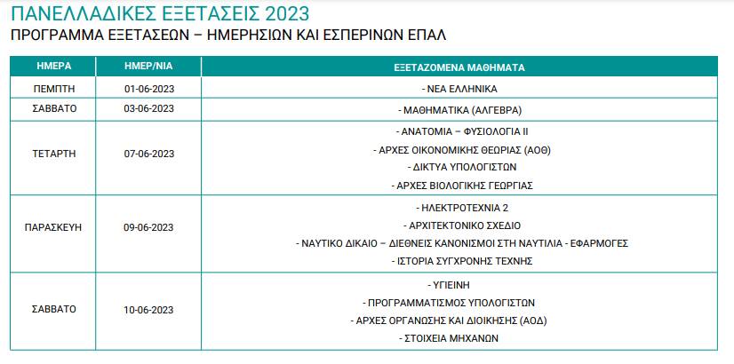 Αναλυτικά το πρόγραμμα των Πανελλαδικών Εξετάσεων 2023 για ΓΕΛ και ΕΠΑΛ