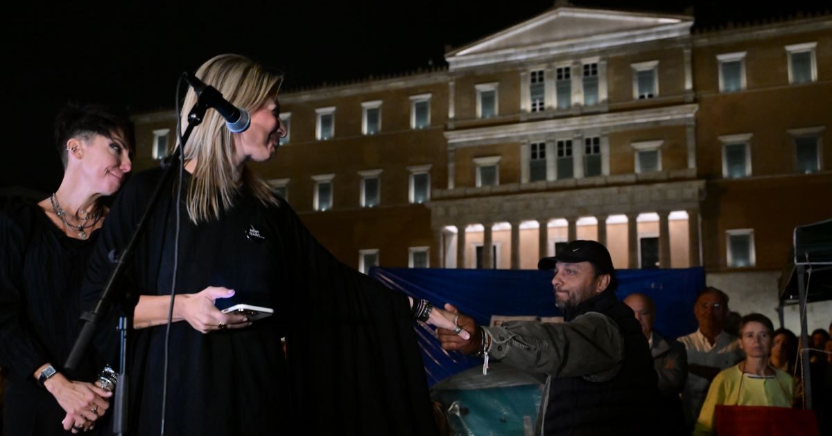 Η Μαρία Καρυστιανού στη συγκέντρωση αλληλεγγύης στον Πάνο Ρούσι όταν έκανε απεργία πείνας στο Σύνταγμα / ΤΑΤΙΑΝΑ ΜΠΟΛΑΡΗ/EUROKINISSI