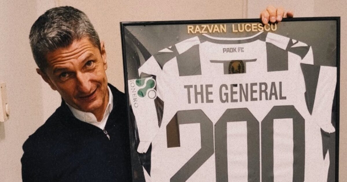 Ο Ραζβάν Λουτσέσκου πήρε μία πλακέτα για τις 200 νίκες του από τον ΠΑΟΚ και κέρδισε το χειροκρότημα των ποδοσφαιριστών του, σε ένα πανηγυρικό κλίμα, μετά και το νέο θετικό αποτέλεσμα στην Τούμπα για τη Super League.