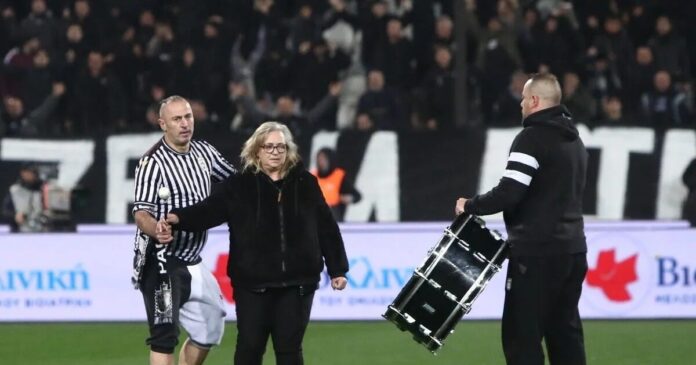 Η συγκεκριμένη γυναίκα βρέθηκε στον αγωνιστικό χώρο της Τούμπας και μέσα σε έντονα φορτισμένο κλίμα, χτύπησε το τύμπανο των οργανωμένων οπαδών του ΠΑΟΚ.