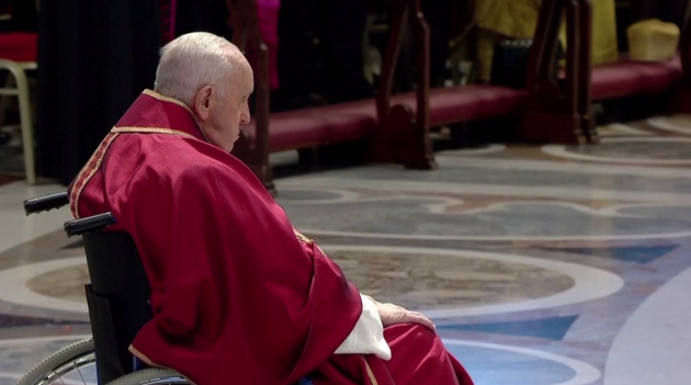 Όμως ο Προκαθήμενος της Ρωμαιοκαθολικής Εκκλησίας χοροστάτησε στη λειτουργία της Μεγάλης Παρασκευής και έφτασε με αμαξίδιο στη Βασιλική του Αγίου Πέτρου.