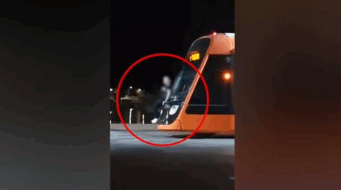 Αυτή τη φορά ένας ανήλικος εθεάθη να κρέμεται στο πίσω μέρος του τραμ, με τον συρμό μάλιστα να είναι εν κινήσει.