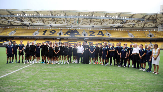Χτες (23/07) πριν από την έναρξη της τελευταίας προπόνησης εν όψει της αναμέτρησης κόντρα στην Ίντερ Εσκάλδες (24/07, 21:00, ΕΡΑ ΣΠΟΡ) ο “Δικέφαλος” πραγματοποίησε τον καθιερωμένο αγιασμό παρουσία του Μάριου Ηλιόπουλου.
