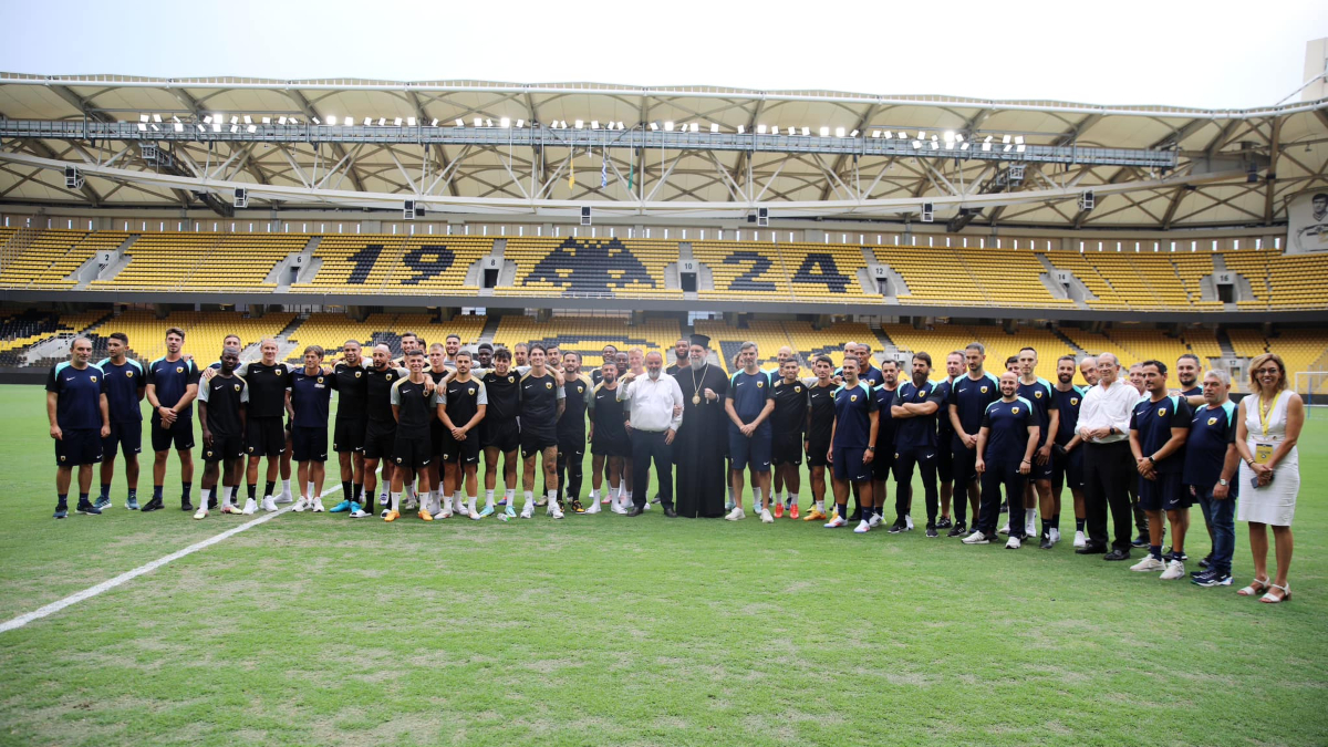 «Τον καθιερωμένο Αγιασμό για την έναρξη της νέας αγωνιστικής περιόδου πραγματοποίησε το ποδοσφαιρικό τμήμα της ΑΕΚ πριν από τη χθεσινή προπόνηση της ομάδας στην OPAP Arena. Την ακολουθία του Αγιασμού τέλεσε ο Σεβασμιώτατος Μητροπολίτης Νέας Ιωνίας, Φιλαδελφείας, Ηρακλείου και Χαλκηδόνος κ. Γαβριήλ, παρόντος του ιδιοκτήτη της ΠΑΕ ΑΕΚ Μάριου Ηλιόπουλου και μελών της διοίκησης. Στον χαιρετισμό του, ο κ. Ηλιόπουλος ευχήθηκε στα μέλη του ποδοσφαιρικού τμήματος να έχουν μια καλή χρονιά, με υγεία και επιτυχίες για την ομάδα μας»//ΝΚ