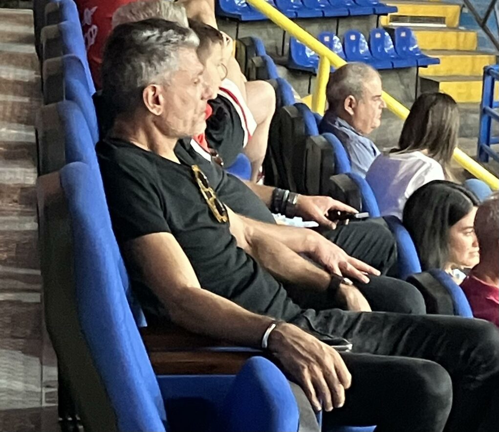 Ο παλαίμαχος παίκτης του Περιστερίου είχε την ευκαιρία να δει την ενδιαφέρουσα αναμέτρηση της basket league, όπου οι γηπεδούχοι έψαχναν την πρώτη νίκη στο πρωτάθλημα.