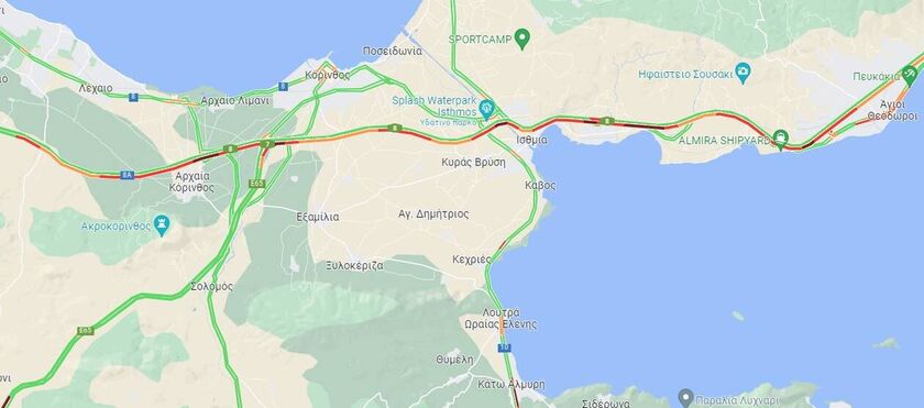 Η εικόνα στην εθνική οδό Αθηνών-Κορίνθου λίγο πριν τις 2 το μεσημέρι