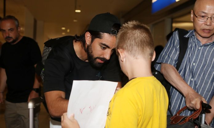 Το απόγευμα της Κυριακής (16/07) λοιπόν, ο διεθνής Μεξικανός προσγειώθηκε στο αεροδρόμιο “Ελευθέριος Βενιζέλος”, όπου τον υποδέχτηκαν μερικοί φίλοι του “Δικέφαλου” και φωτογραφήθηκαν μαζί του.//Γ.
