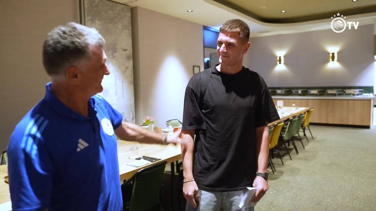 Εκεί τον υποδέχθηκαν οι Χοσέ Λουίς Μεντιλίμπαρ, το προπονητικό επιτελείο του Ολυμπιακού, καθώς επίσης και οι Ντάρκο Κοβάσεβιτς και Κριστιάν Καρεμπέ.//ΝΚ