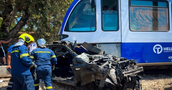 Οι πυροσβέστες μετά τον απεγκλωβισμό του 55χρονου μπροστά στο αυτοκίνητο /ΔΗΜΗΤΡΗΣ ΧΡΙΣΤΟΔΟΥΛΟΠΟΥΛΟΣ / EUROKINISSI