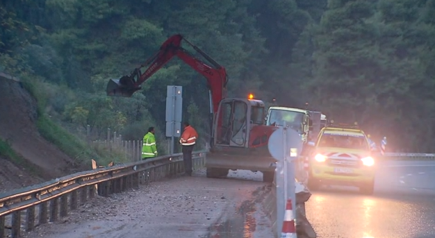 Οι πολύ σφοδρές καταιγίδες και χαλαζοπτώσεις που σημειώθηκαν το μεσημέρι της Τρίτης μεγαλώνουν τον κίνδυνο κάποιας κατολίσθησης και γι’ αυτό τον λόγο στην Εθνική Οδό βρίσκονται μηχανήματα του Δήμου προκειμένου να αποτρέψουν κάτι τέτοιο να συμβεί.
