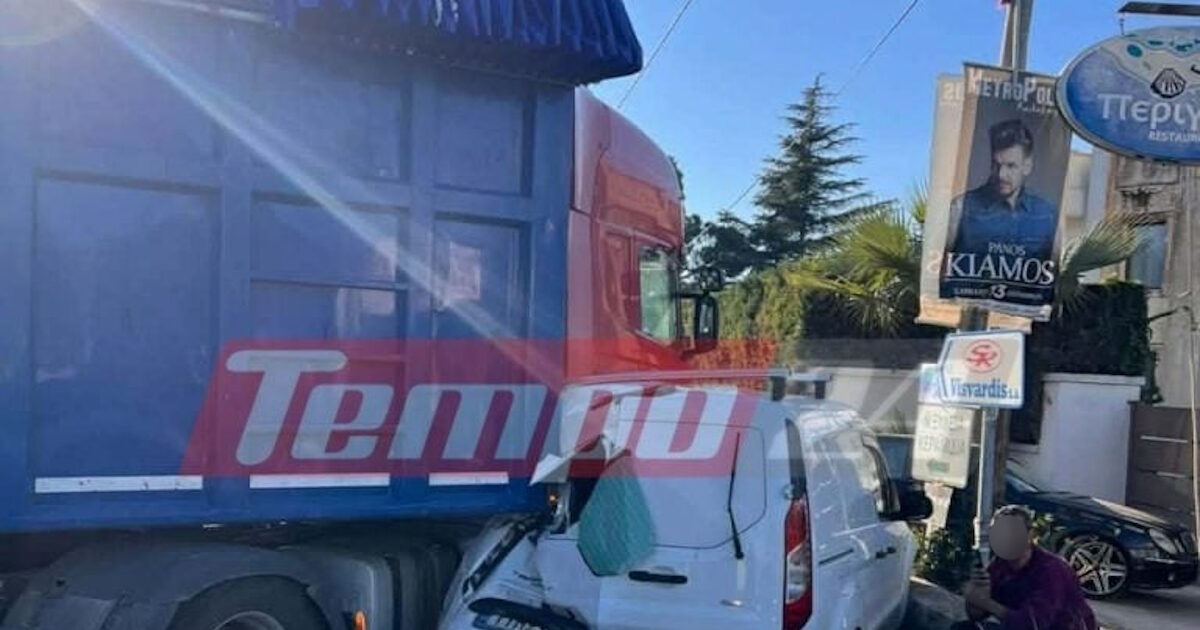 Το τροχαίο στην Πάτρα φαίνεται ότι το προκάλεσε μία νταλίκα η οποία συγκρούστηκε με βανάκι και να το «στρίμωξε» σε μία μάντρα σπιτιού.
