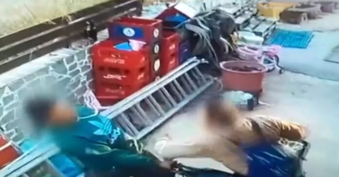 Όπως φαίνεται στο βίντεο, ο ανήλικος, που τότε ήταν 17 ετών, είχε μόλις φτάσει με το μηχανάκι στο συνεργείο, όταν ο πατέρας του τον πλησιάζει και τον χτυπάει στο πρόσωπο, με τον γιο να προσπαθεί να αποφύγει τα χτυπήματα.
