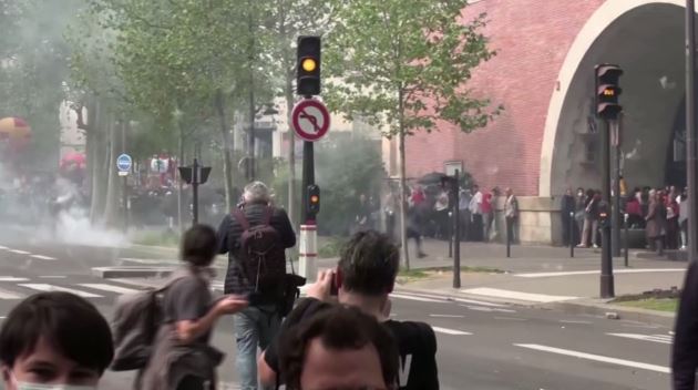 Οι πορείες για την εργατική πρωτομαγιά στο Παρίσι δεν αργούν να μετατραπούν σε μάχες ανάμεσα σε διαδηλωτές και αστυνομικούς.