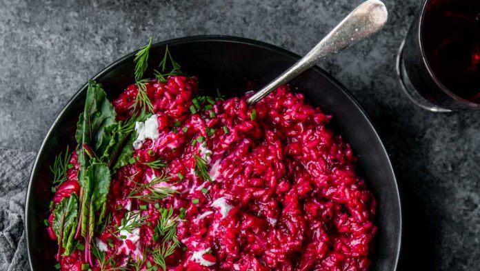 Προσθέτεις στο ρύζι μια κουτάλα από το ζωμό παντζαριών και επαναλαμβάνεις όταν εξατμίζεται μέχρι να αδειάσει η πρώτη κατσαρόλα