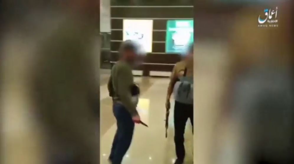 Το βίντεο που δόθηκε στην δημοσιότητα από το κανάλι των ISIS στο Telegram, καταγράφει την καρέ καρέ στιγμή που οι μαχητές του ISIS μπαίνουν στο εμπορικό κέντρο και σκορπούν τον θάνατο.