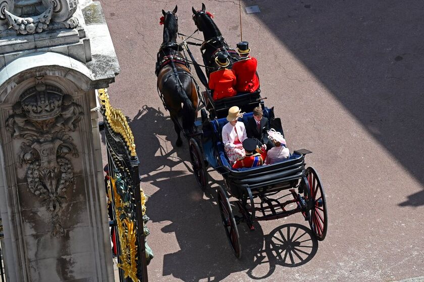 Στο Λονδίνο ταξίδεψε και ο εγγονός της βασίλισσας, πρίγκιπας Χάρι με τη σύζυγό του Μέγκαν Μαρκλ και τα δυό τους παιδιά. Ωστόσο, παρακολούθησαν μόνο την παρέλαση και χωρίς να παραβρεθούν στο μπαλκόνι με τα υπόλοιπα μέλη της βασιλικής οικογένειας.