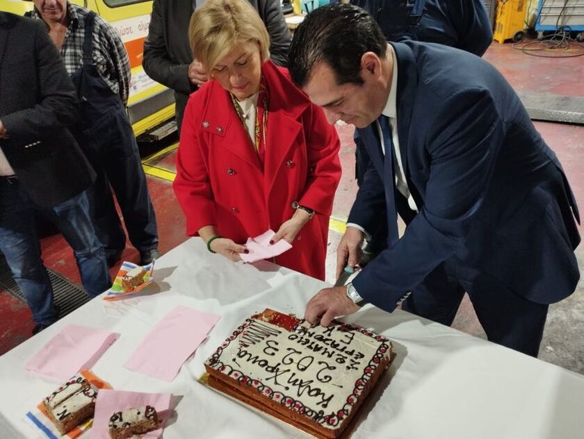 Ο Υπουργός και η Αναπληρώτρια Υπουργός επισκέφτηκαν και το συνεργείο οχημάτων της κεντρικής υπηρεσίας του ΕΚΑΒ Αθήνας όπου έκοψαν με τους εργαζόμενους την βασιλόπιτα τους.