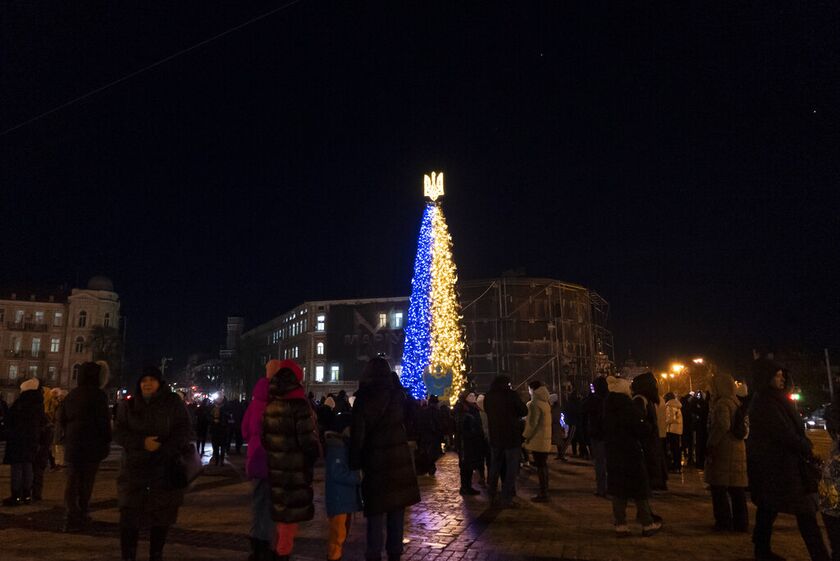 Η ημέρα ξεκίνησε με μια σειρά επιθέσεων εναντίον κρίσιμων υποδομών του Κιέβου. Όμως το βράδυ τοποθετήθηκε στο κέντρο της ουκρανικής πρωτεύουσας ένα δέντρο ύψους 12 μέτρων στολισμένο με περιστέρια, το σύμβολο της ειρήνης, ενώ τα φωτάκια του ήταν μπλε και κίτρινα, στα χρώματα της ουκρανικής σημαίας. Στην κορυφή του έχει τοποθετηθεί το εθνόσημο της Ουκρανίας, μια χρυσή τρίαινα.