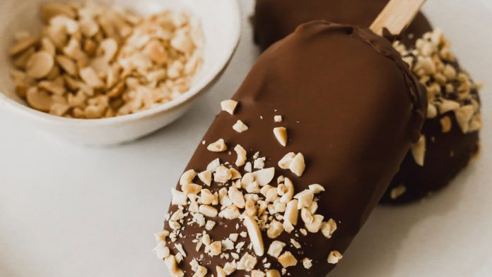 Μετά το ανακατεύουμε καλά, βάζουμε το μείγμα σε διάφανα ποτηράκια μέχρι τη μέση και μετά ένα ξυλάκι στη μέση. Μπαίνουν για τρεις ώρες στη κατάψυξη και όταν τα βγάλεις φτιάχνεις σοκολάτα σε μπεν-μαρί για να προσθέσεις από πάνω.