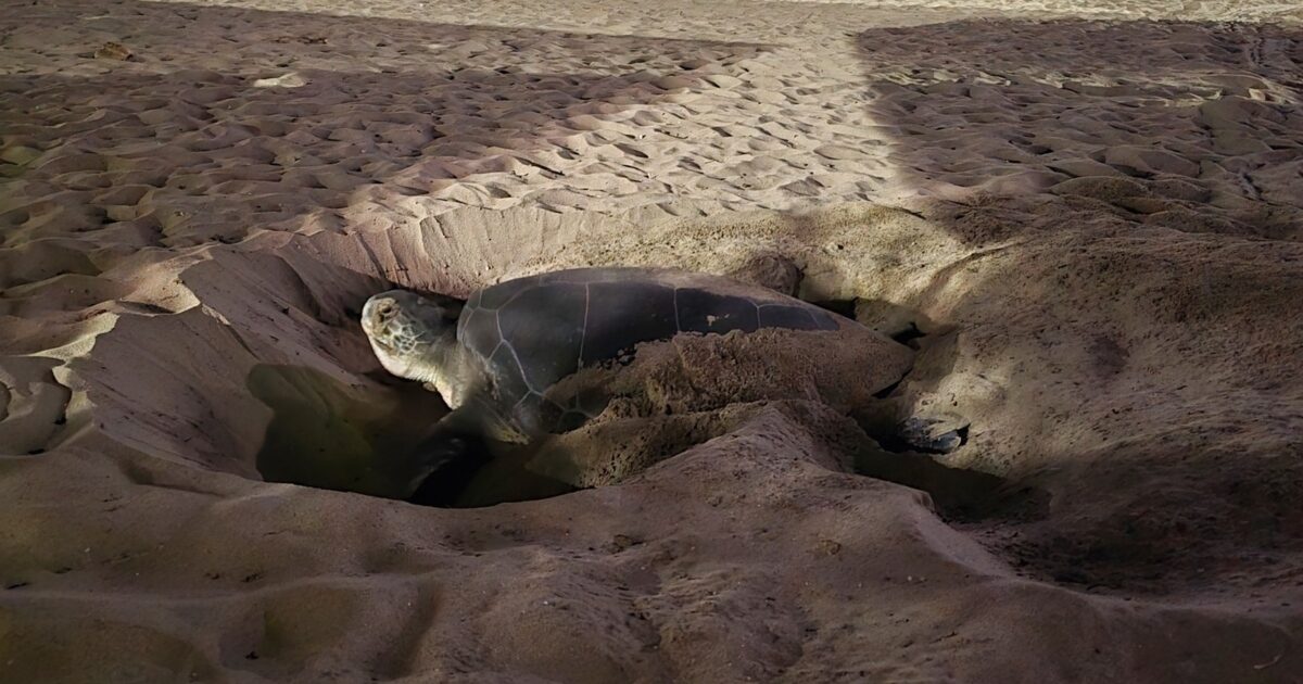 Σε βίντεο που ανέβηκε στα social media φαίνεται η στιγμή που η χελώνα σκάβει για να αφήσει τα αυγά της.
