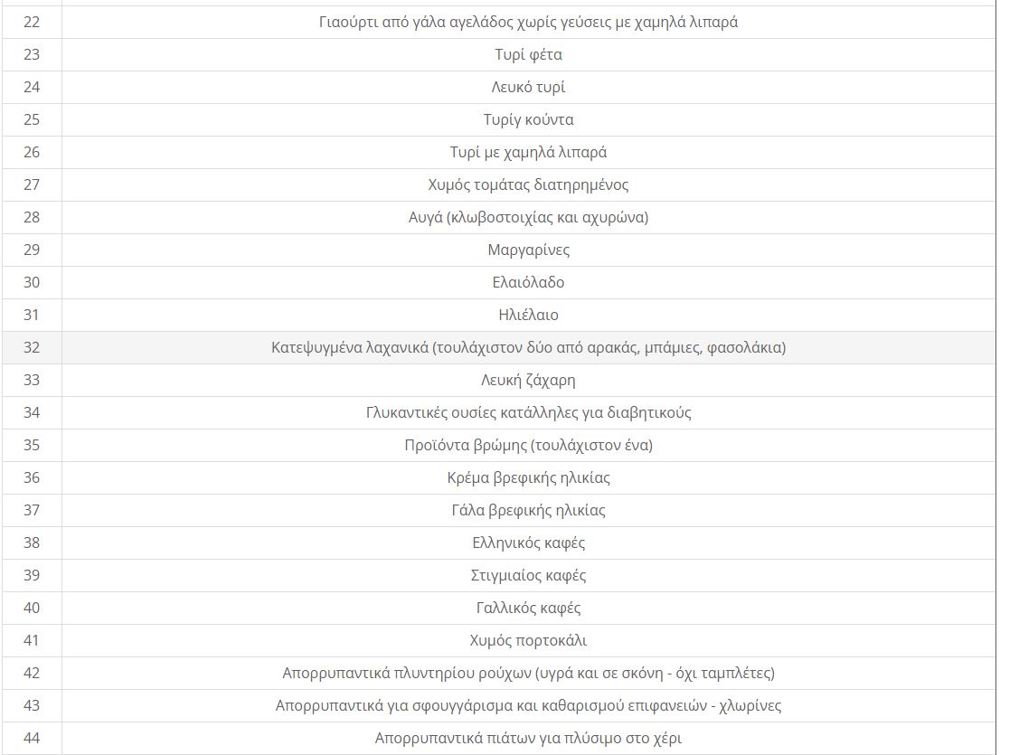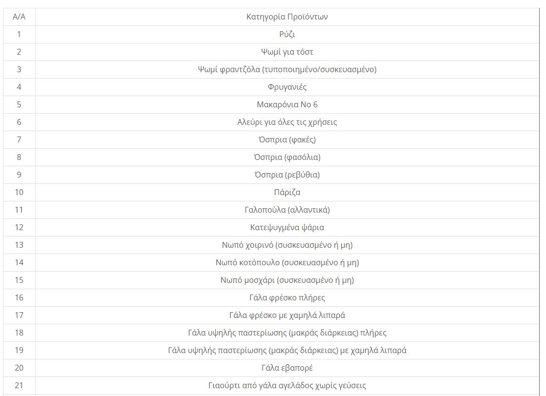 Επάρκεια προϊόντων που συμμετέχουν στην πρωτοβουλία «το καλάθι του νοικοκυριού»
