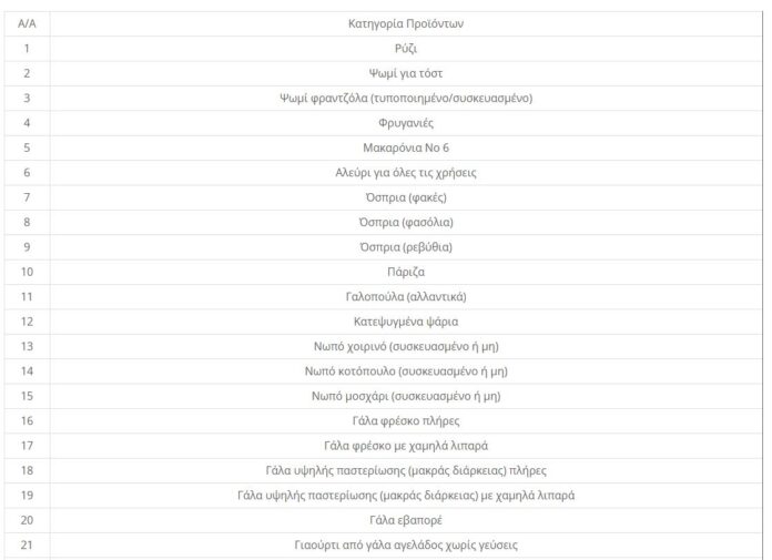 Κατηγορίες προϊόντων που εντάσσονται στο «καλάθι του νοικοκυριού»