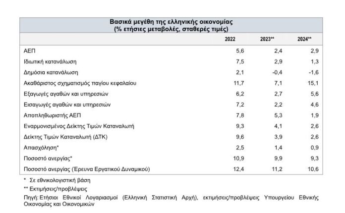 “Κλείδωσε” το ποσοστό της αύξησης που θα δοθεί από την 1η Ιανουαρίου 2024 στις κύριες συντάξεις των ασφαλισμένων. Όπως προβλέπει το τελικό σχέδιο του προϋπολογισμού 2024 που κατατέθηκε στη Βουλή, ο πληθωρισμός της χώρας θα διαμορφωθεί στο 3,9% το 2023 και στο 2,4% το ΑΕΠ το τρέχον έτος: