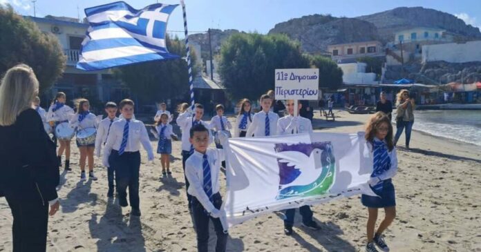 Μέσα σε κλίμα συγκίνησης, πραγματοποιήθηκε σήμερα στην ακριτική Ψέριμο η παρέλαση της 28ης Οκτωβρίου – όλα τα παιδιά παρέλασαν στην παραλία του νησιού, τιμώντας το ΟΧΙ του 1940.