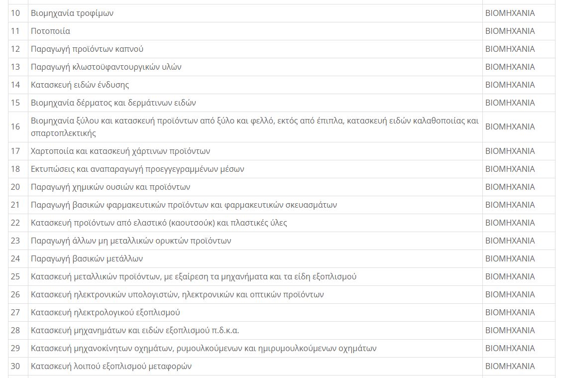 Από το ανωτέρω εδάφιο εξαιρούνται οι επιχειρήσεις που δραστηριοποιούνται στον κλάδο της ενέργειας, στα πετρελαιοειδή και στα ορυχεία (ήτοι, όλοι οι ΚΑΔ με πρώτα δύο ψηφία το 19).