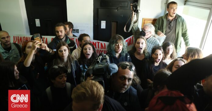 Σύμφωνα με μία φοιτήτρια από το ΑΠΘ, στην αίθουσα είναι πολλά άτομα λόγω σύμπτυξης των τμημάτων.