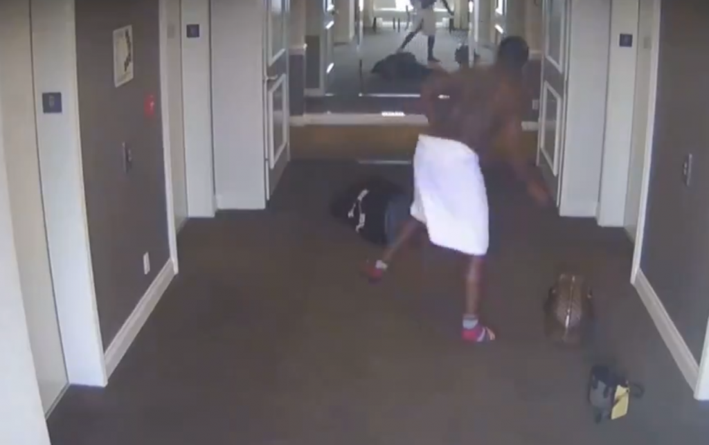 O P. Diddy τρέχει ημίγυμνος τυλιγμένος με μόνο με μια πετσέτα, να προλάβει την σύντροφο του Cassie Ventura στο ασανσέρ του διαδρόμου, στο ξενοδοχείο Intercontinental του Λος Άντζελες.