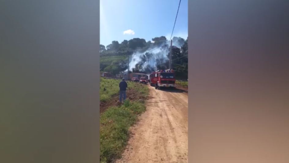 Σύμφωνα με τις πληροφορίες η πυρκαγιά καίει χαμηλή βλάστηση αλλά στο σημείο πνέουν άνεμοι περίπου στα 4 με 5 μποφόρ.