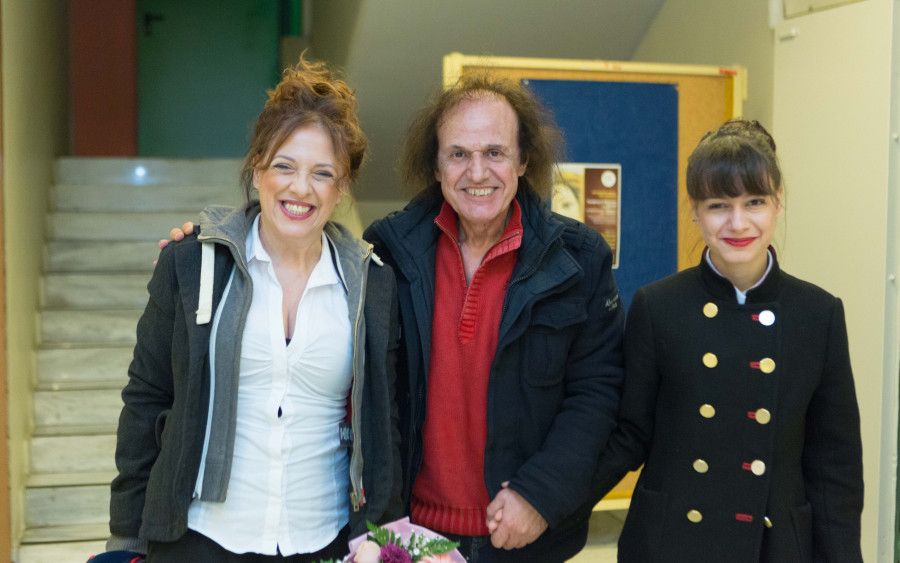 Κάτι ανάλογο έπαθε κι ο Διονύσης Σχοινάς που εκείνη την ώρα τραγουδούσε το “Λιωμένο παγωτό” από το συγκρότημα Ξύλινα Σπαθιά και όταν τον αντιλήφθηκε άμεσα πήγε προς το μέρος του… ενθουσιασμένος… “Βασίλης Παπακωνσταντίνου… ο μοναδικός μας, ο μοναδικός…. Ευχαριστούμε….” του είπε αγκαλιάζοντάς τον με τον αγαπημένο καλλιτέχνη να χαμογελάει με τη σεμνότητα που πάντα τον διακρίνει…. “Ελένη μου” συνέχισε ο Διονύσης Σχοινάς προες την Ελένη Ράντου που κι εκείνη φορούσε το παλτό της ενώ η κόρη τους ήταν ήδη όρθια λίγο πιο πίσω…