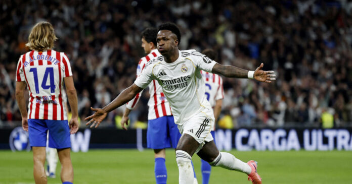 Η Ρεάλ Μαδρίτης βρέθηκε να χάνει από την Ατλέτικο Μαδρίτης και ισοφαρίστηκε με την ανατροπή του σκορ, αλλά ένα γκολ του Βινίσιους Τζούνιορ της χάρισε τελικά τη νίκη με 3-2, παρότι έμεινε και με παίκτη λιγότερο στο φινάλε της αναμέτρησης.